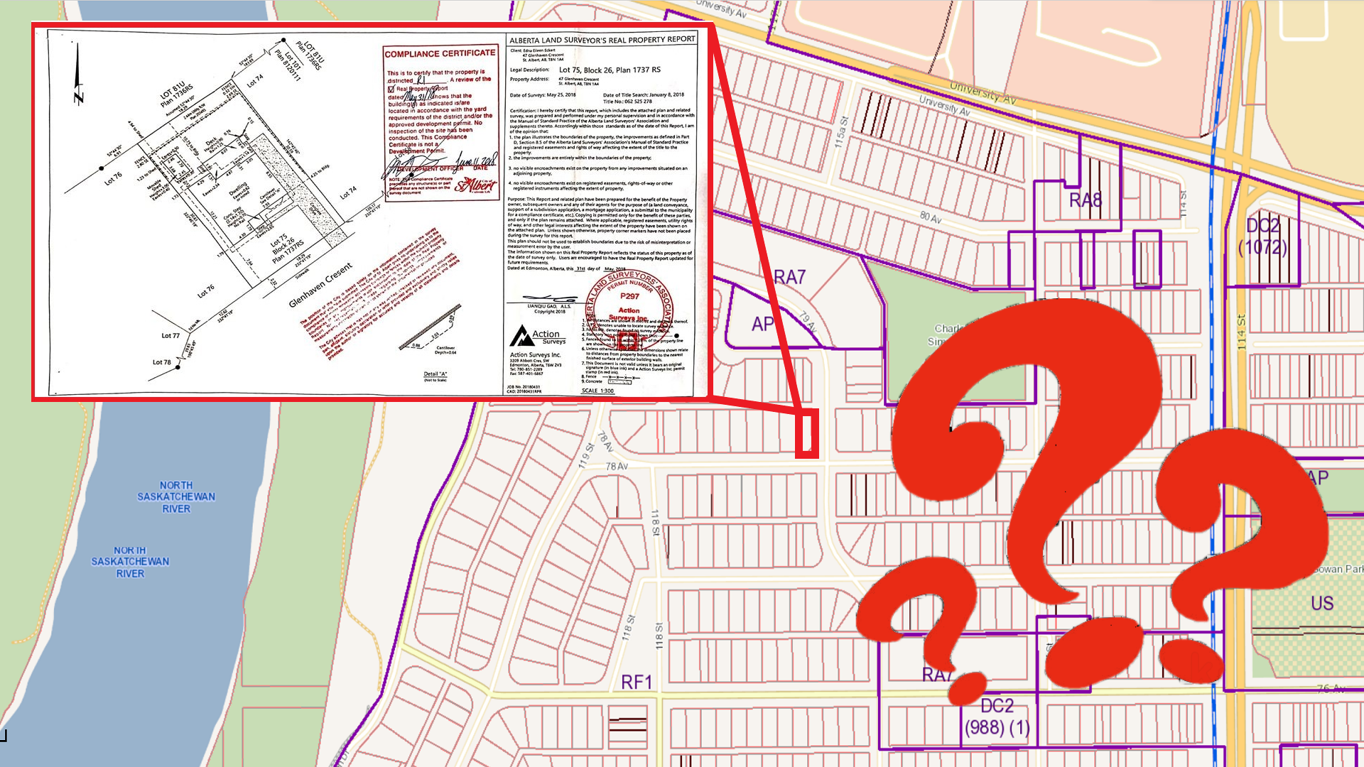 Older neighborhoods often have more issues with the house, garage or outbuildings being non-compliant or encroaching onto your neighbour’s property or city land due to changes in zoning.